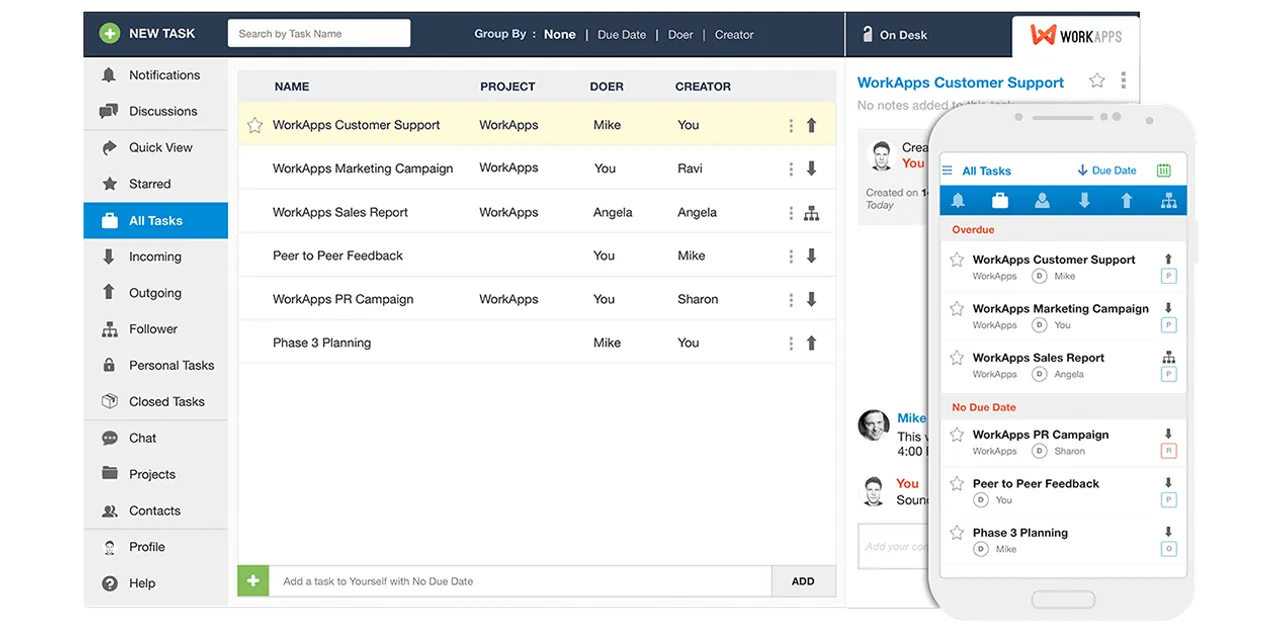 There was a need for a single platform that linked the sales, design, and backend operations teams. The WorkApps Collaboration platform suited them perfectly since it helped them stitch up 6 tools on a single screen – chats, tasks, discussions, files, projects and even monitor performance.